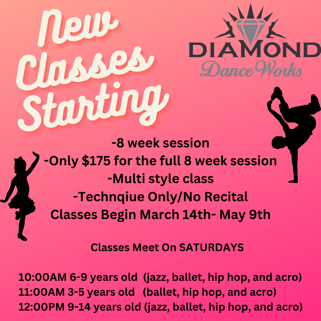 Registration Opens January 15th. Learn all the styles listed for your age group! Itβs a great session to get extra practice or to try a new style. This class does not participate in recital. Class begins March 14th and ends May 9th. There is no class March 14th when the studio is closed for spring break. It is a 8 week session, no makeups or discounts are offered for classes missed.