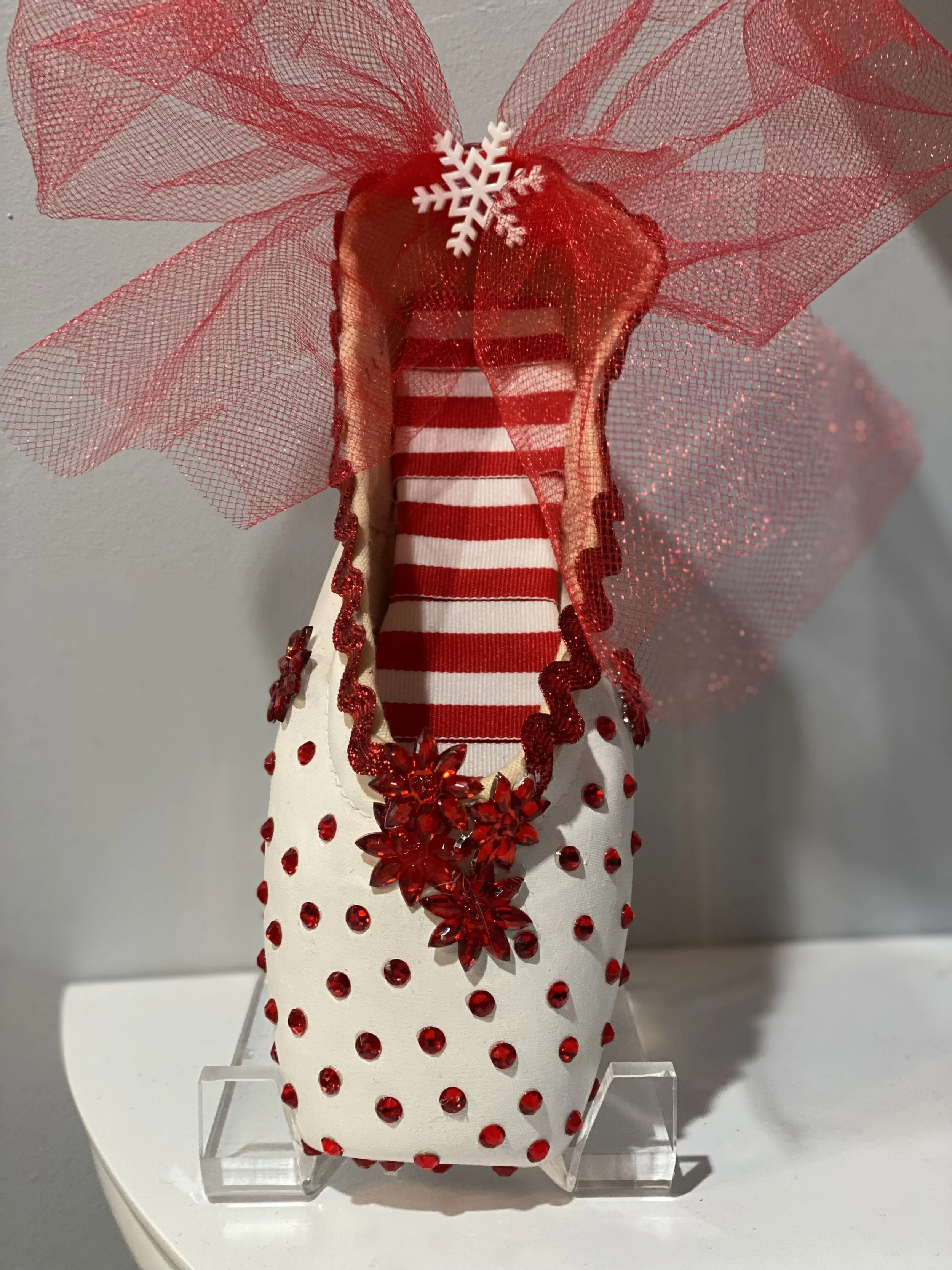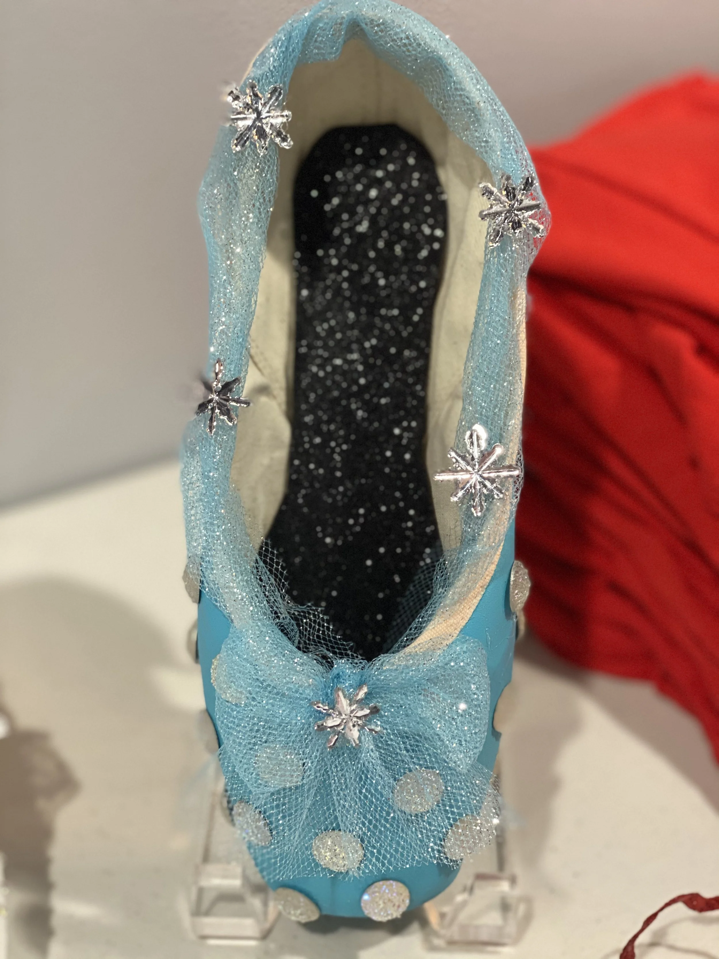 Purchase a new pointe shoe for $20 and decorate it! You can use paint, embellishments, ribbon etc. Every pointe shoe will be displayed in the theatre lobby at the performances and will be silent auctioned. All money raised during the silent auction will go to our Shine Bright Scholarship Fund. Examples Below! Click Here to Enter Contest