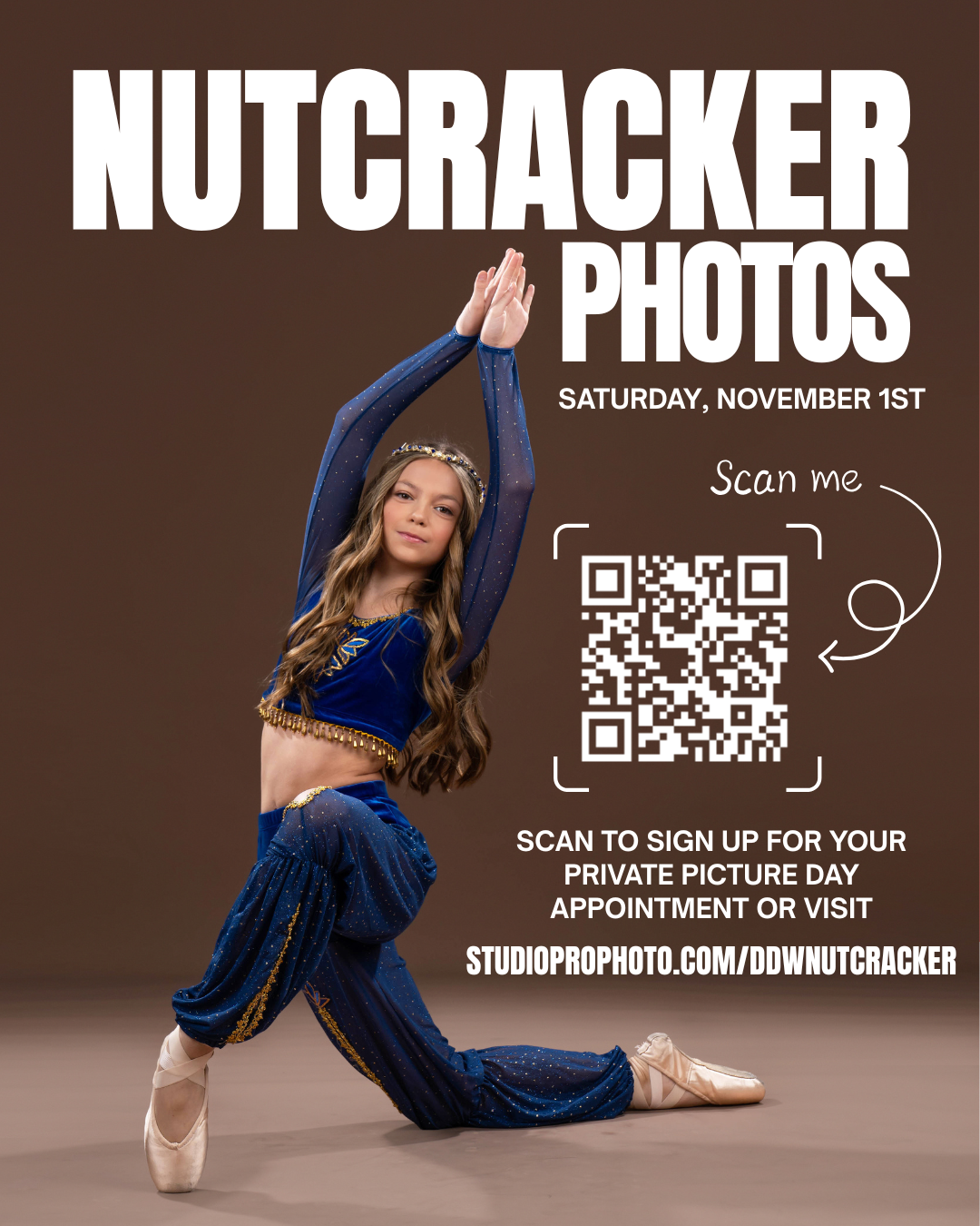 Picture Day for Nutcracker 2025 will take place on Saturday, November 1st between 9am and 12pm at Diamond Dance Works. Bookings for Picture Day take place directly through Cayla Hoskin of Studio Pro Photography, not through Diamond Dance Works.